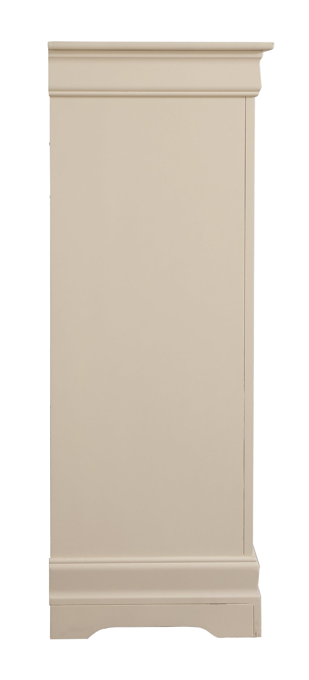 - Smooth drawer fronts with classic pull handles for easy opening and closing