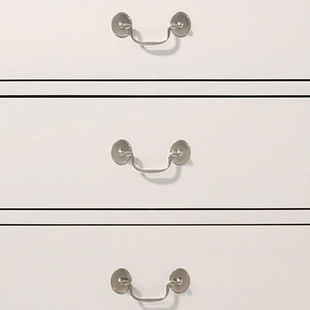 - Smooth drawer fronts with classic pull handles for easy opening and closing