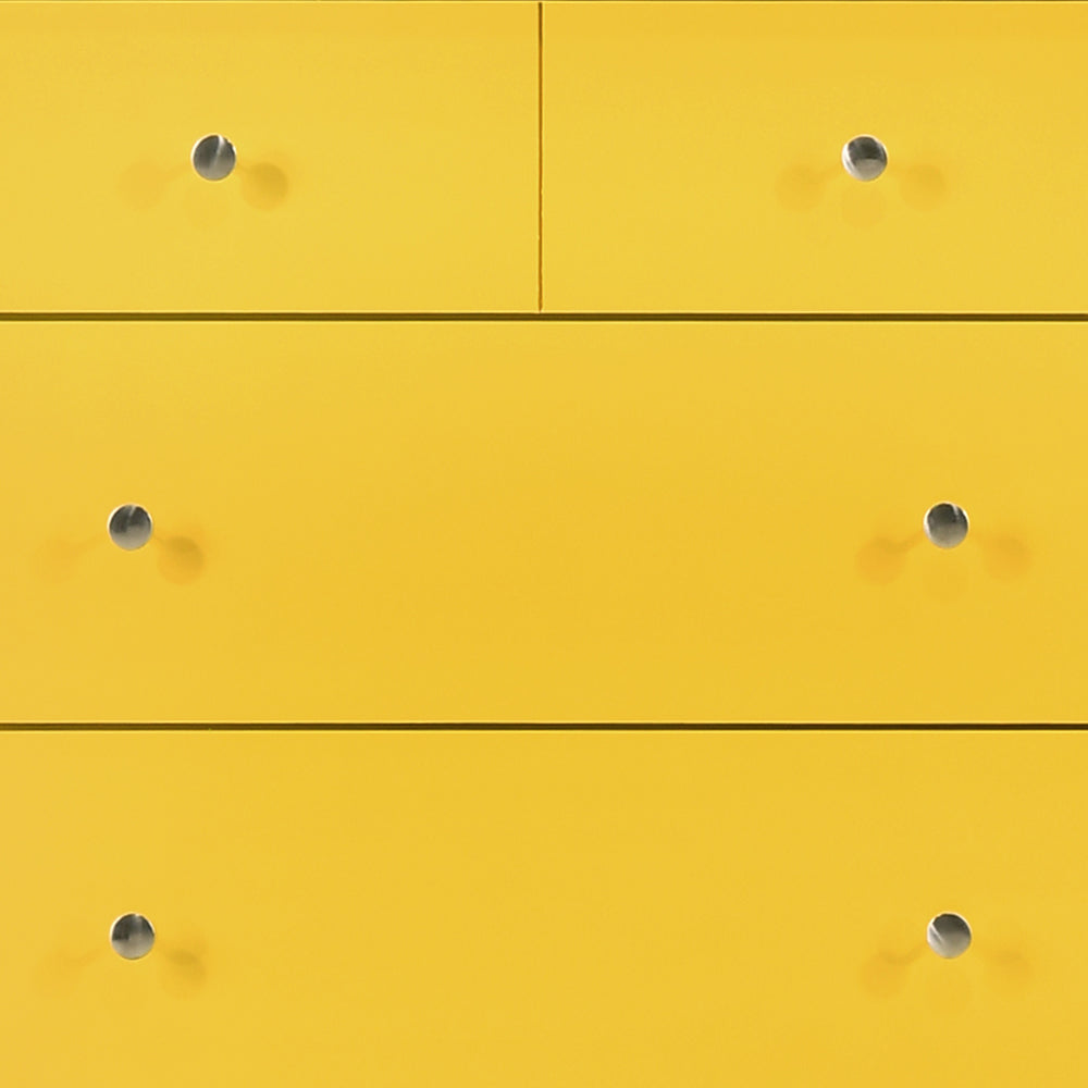 - Smooth drawer fronts with classic pull handles for easy opening and closing
