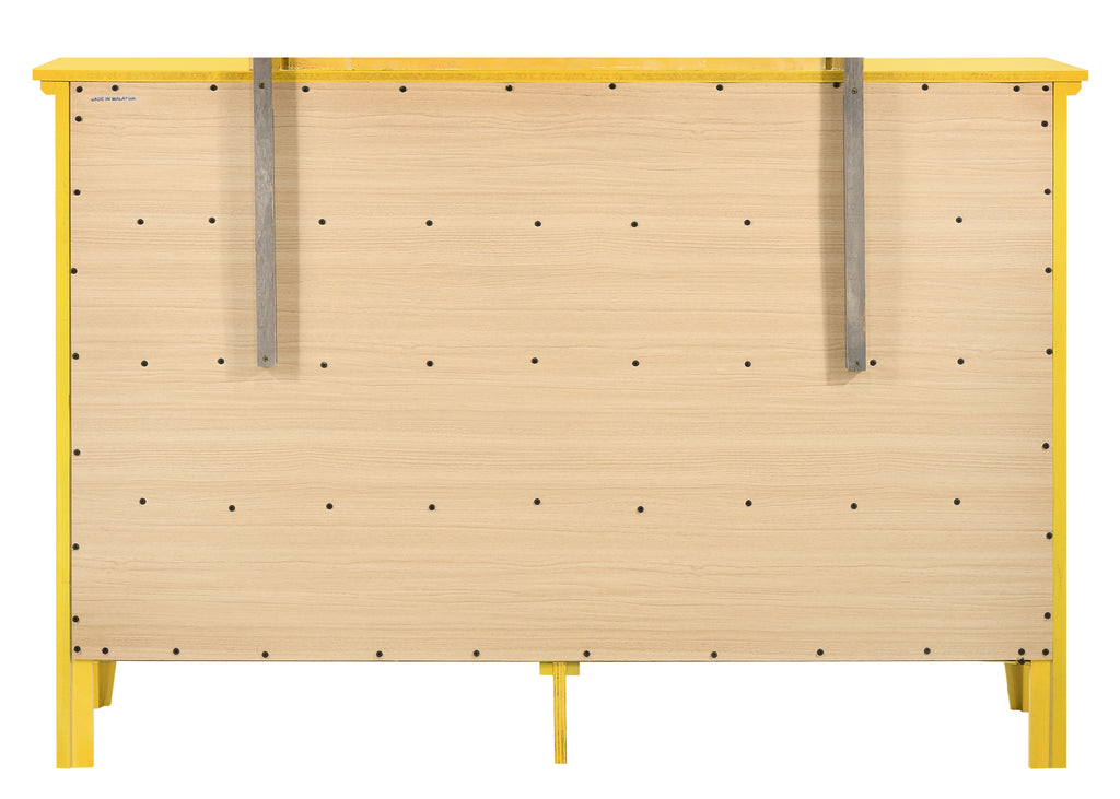 Assembled Bedroom Dresser is Finished in Real Wood Veneers over Manufactured and Solid Wood. Drawers Move on Center Supported Metal Guides and Are Dovetailed Front and Back. Corner Blocks are utilized to Support Drawer Bottoms. Choose from a Variety of Colors. Additonal Case Pieces are Available as well as Matching Beds