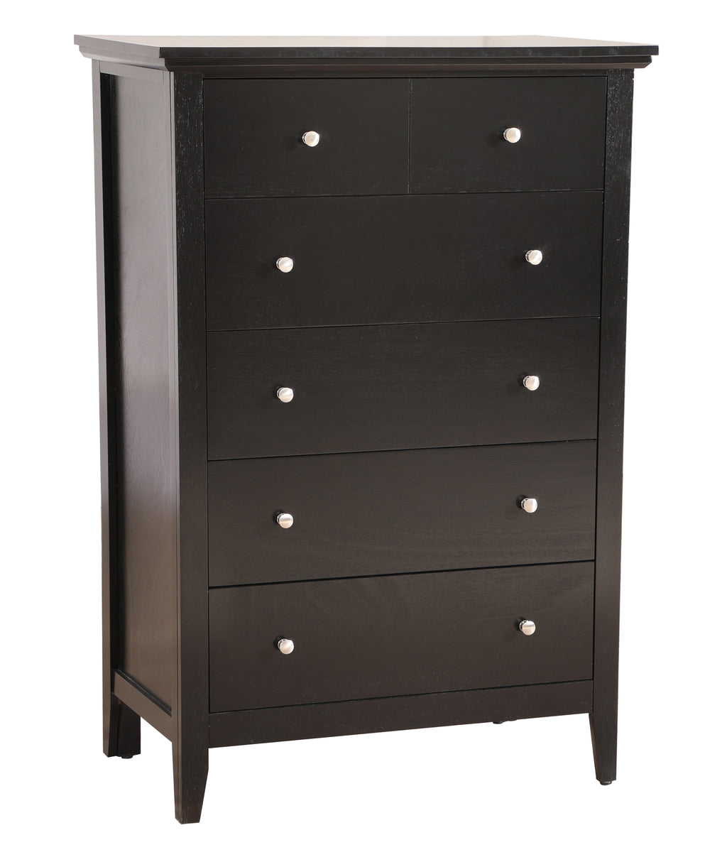 Assembled Bedroom Chest is Finished in Real Wood Veneers over Manufactured and Solid Wood. Drawers Move on Center Supported Metal Guides and Are Dovetailed Front and Back. Corner Blocks are utilized to Support Drawer Bottoms. Choose from a Variety of Colors. Additonal Case Pieces are Available as well as Matching Beds