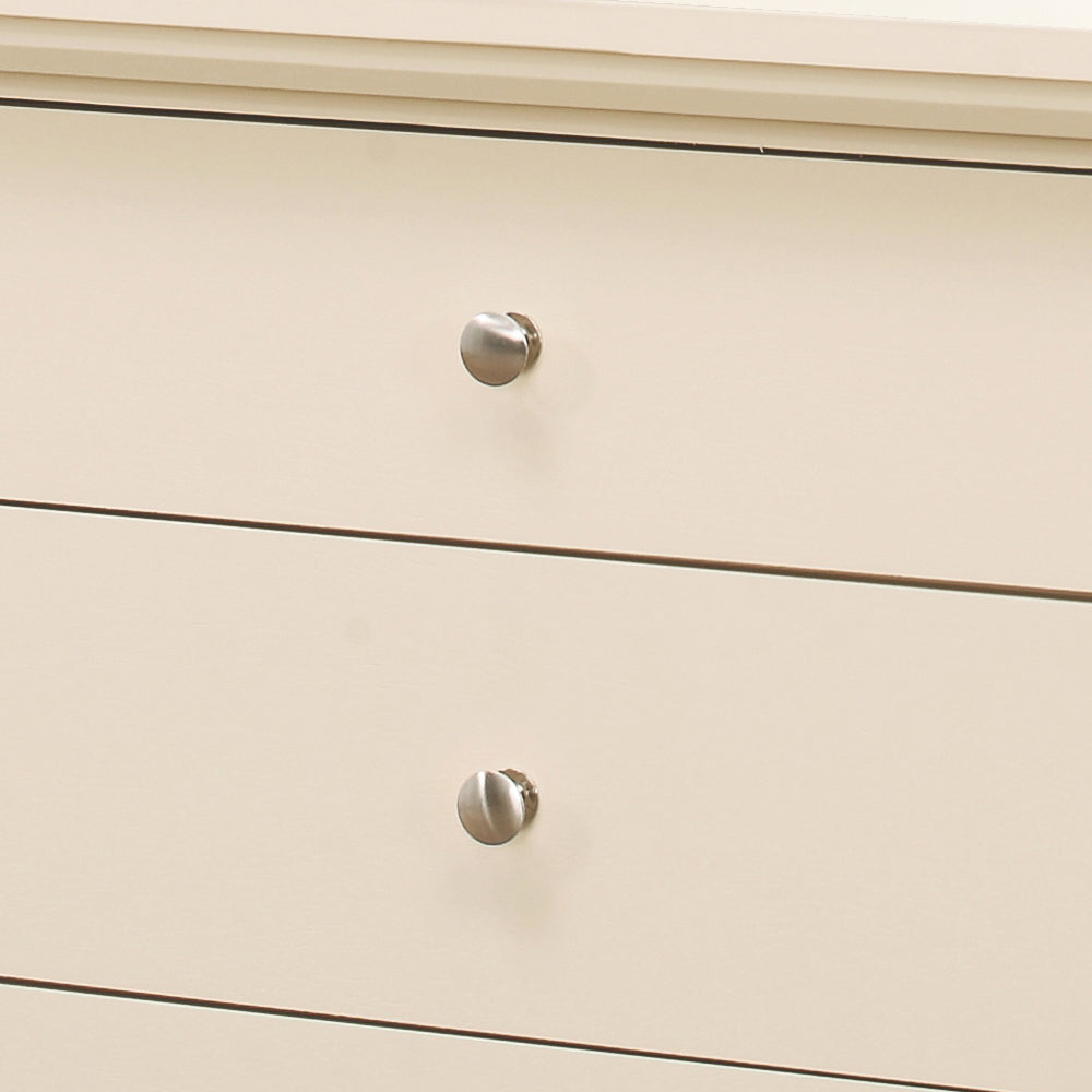 - Smooth drawer fronts with classic pull handles for easy opening and closing