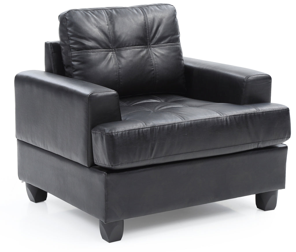 This chair delivers a blend of comfort and modern design, making it a versatile addition to any room. The thick cushioning offers a supportive seating experience, while the squared armrests contribute to its bold, stylish profile. Tufted stitching on the seat and back creates a refined touch that elevates its overall appearance. Ideal as a standalone accent piece or paired with matching furniture, it provides long-lasting comfort and everyday usability.