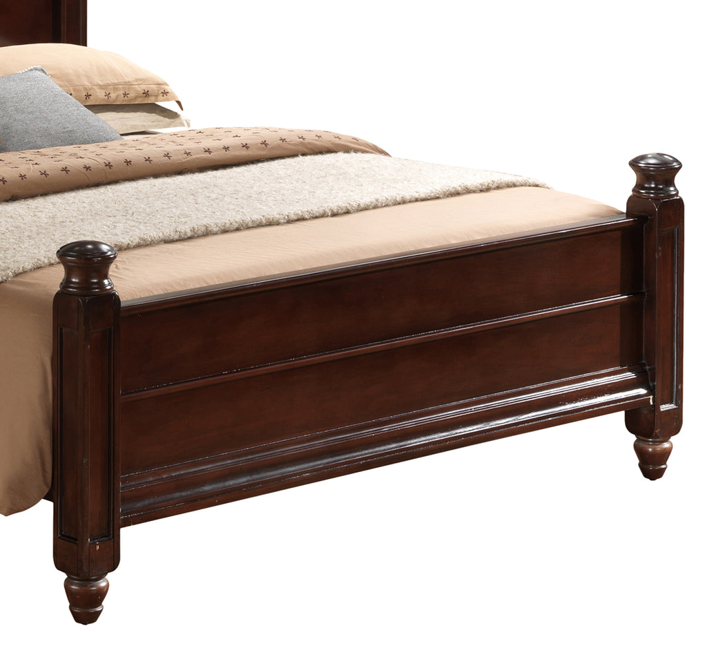 This bed introduces a bold traditional presence to the bedroom, highlighted by a tall arched headboard that instantly draws attention. Its sculpted silhouette, paired with turned posts and smooth panel detailing, gives the design a timeless look that feels both classic and inviting. The matching footboard mirrors the headboard’s graceful curves, creating a balanced and cohesive appearance from every angle. Built with a sturdy frame that supports daily use, this bed offers long-lasting strength without compromising style. Its refined craftsmanship makes it an ideal statement piece for anyone who appreciates traditional furniture with a warm, elegant feel.