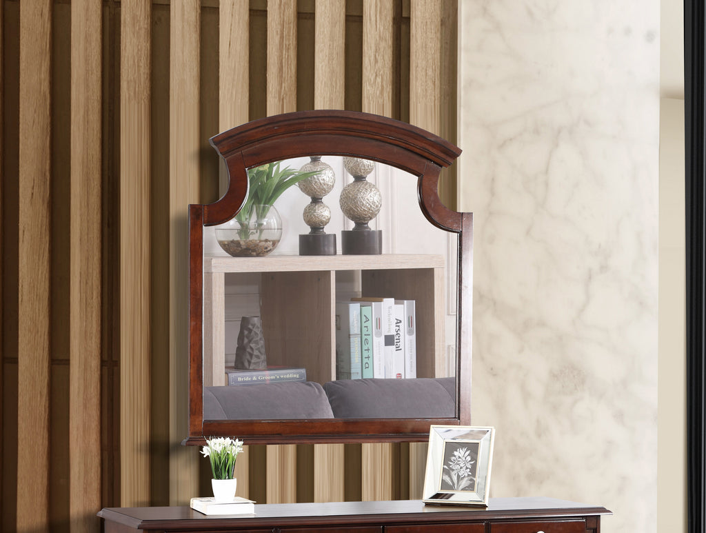 Complete your bedroom with this beautifully shaped mirror designed to add elegance and visual balance to your space. The gracefully contoured top creates a refined silhouette that draws the eye while maintaining a timeless, furniture-forward look. Its generously sized reflective surface provides a clear view for everyday routines and helps enhance light throughout the room.