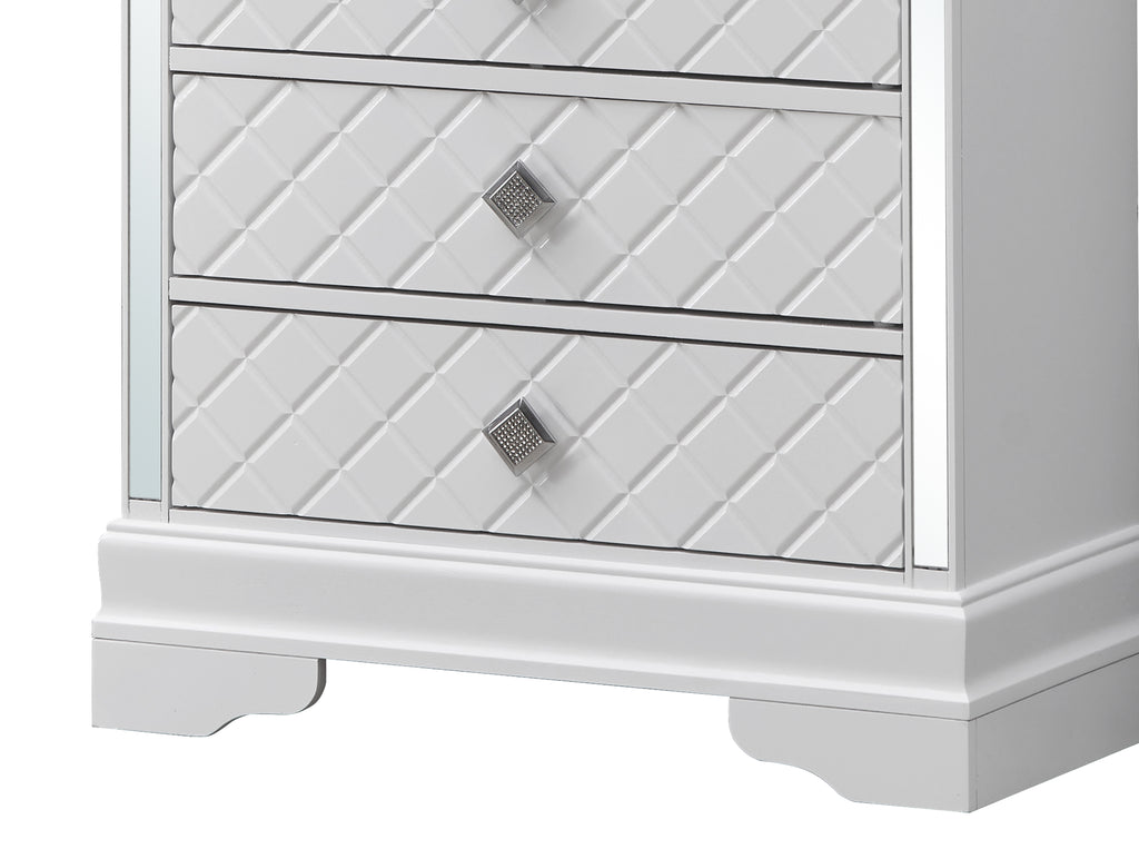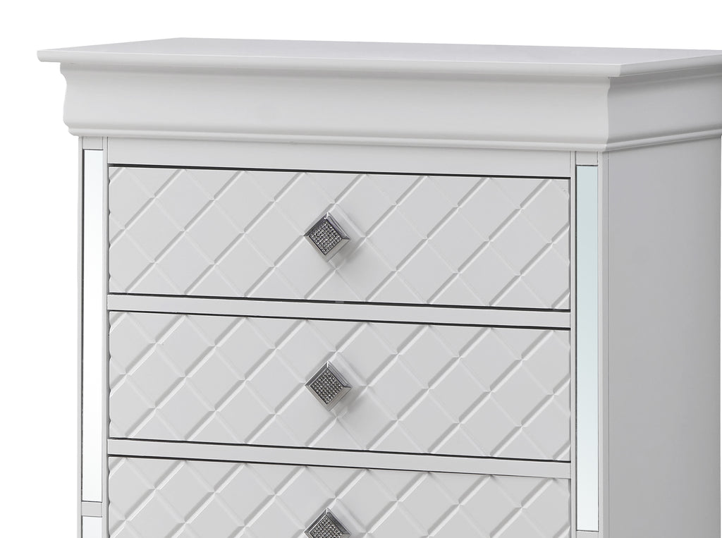 Assembled Bedroom Chest is Finished in Real Wood Veneers over Manufactured and Solid Wood. Drawers Move on Center Supported Metal Guides and Are Dovetailed Front and Back. Corner Blocks are utilized to Support Drawer Bottoms. Choose from a Variety of Colors. Additional Case Pieces are Available as well as Matching Beds