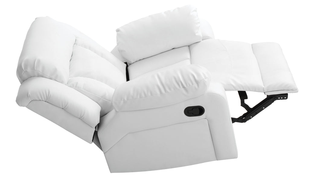 Relax All Day in this Rocker Recliner with Channel Tuft Design Back . Covered in Long Lasting Faux Leather, this Recliner Features Padded Arms, Strong Stitched Seams and an easy to use Reclining Mechanism that is Activated with an Easy to Pull Handle. Choose From Double Reclining Sofa, Loveseat or Single Recliner