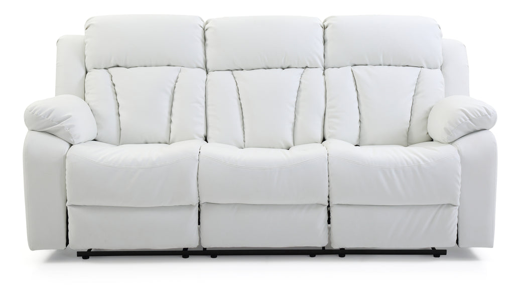 Relax All Day in this Rocker Recliner with Channel Tuft Design Back . Covered in Long Lasting Faux Leather, this Recliner Features Padded Arms, Strong Stitched Seams and an easy to use Reclining Mechanism that is Activated with an Easy to Pull Handle. Choose From Double Reclining Sofa, Loveseat or Single Recliner