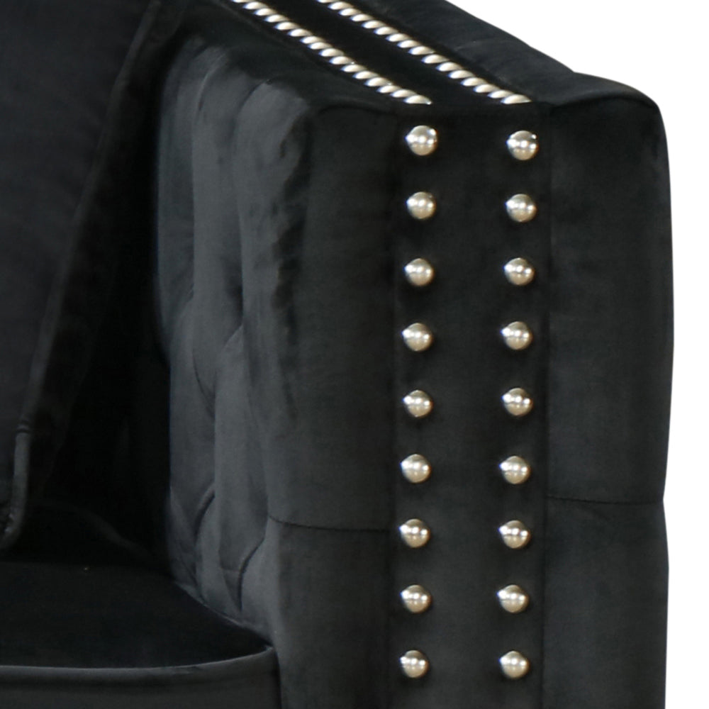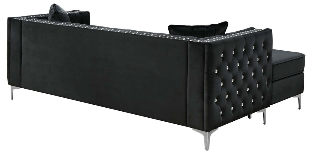 Faux Jewel Tufting, Chrome Legs and Soft Velvety Cover add up to a Super Comfy Set with tons of Style! Pocketed Coil Seating and Welted Cushions add Durability to this Group. It arrives Semi Assembled so it can be Delivered into any Room or Home. It can be set up Left or Right Facing .